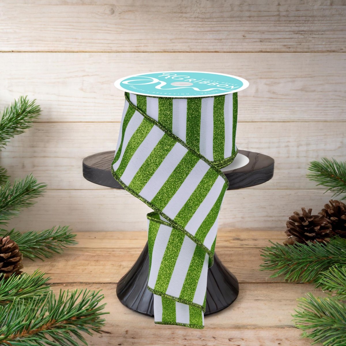 Bring a touch of festive flair to your crafting projects with this 2.5" wide lime green and white glitter striped edge ribbon. The vibrant colors and classic horizontal stripe pattern accented with glitter make it a go to for any holiday. With a generous 10-yard length, this ribbon roll offers ample material for embellishing gifts, wreaths, centerpieces, and more. Crafted from high-quality polyester fabric materials, this ribbon is durable and easy to work with, ensuring your creations look their best. Whether you're a seasoned crafter or just starting out, this versatile ribbon is an essential addition to your crafting stash. RGF1967F5