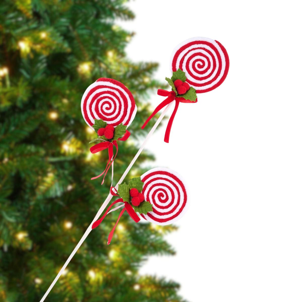 Experience the enchanting collection of three velvet lollipops, each with its own unique charm, that are tied together with a festive velvet ribbon and adorned with holly and red pom pom balls. Unleash your creativity by separating them into individual pieces for precise placement or use them together. XS127576