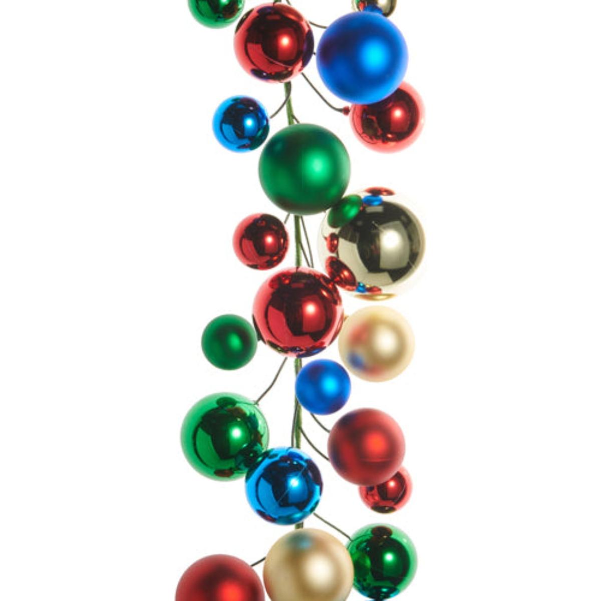 Experience festive and vibrant decorations with this 4' Multicolor Ball Garland. Adorned with a variety of differently-sized, colorful ball ornaments in shades of blue, green, red, and gold, this garland adds a touch of cheer to any space. G4532772