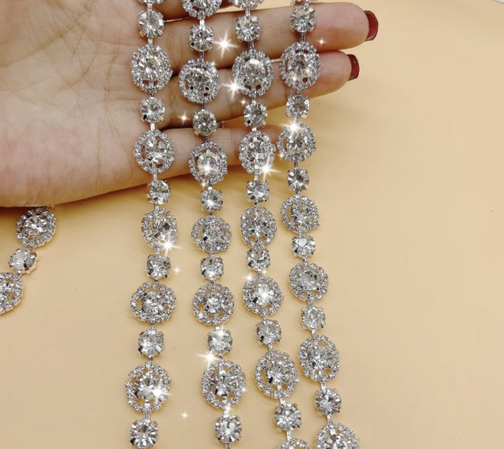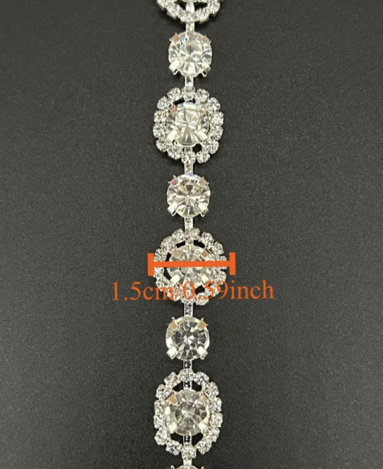This premium rhinestone chain delivers one full yard of radiant embellishment featuring round white glass stones set in durable metal. At .59 inches wide, it provides substantial coverage for homecoming mums, corsages, and decorative trim work. The sparkling faceted stones create brilliant light reflection, making it an excellent choice for crafters who demand quality materials and professional-finished results on special occasion pieces.